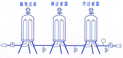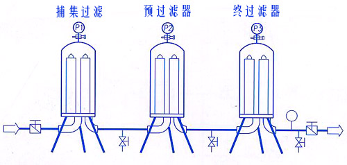 1.捕集過濾器 捕集過濾器又稱保安過濾器,用于去除水中較大的顆粒雜質(zhì),采用聚丙烯熔噴或聚丙烯打折濾芯其過濾精度為10~20um。該濾芯應(yīng)選用容污能力強(qiáng)的漸變孔徑濾芯。 2.預(yù)過濾器 用于保護(hù)終過濾器(除菌過濾器)并延長(zhǎng)其使用壽命,濾芯采用聚丙烯或硼硅酸鹽材質(zhì),折疊結(jié)構(gòu)高通量和增強(qiáng)的容污能力。過濾精度為1~2um。 3.除菌過濾器 用于除去水中的有害微生物,保證工藝用水的微生物穩(wěn)定性。濾芯采用尼龍66或聚醚砜膜式濾材絕對(duì)過濾精度為0.2um或0.45um,具有天然的親水性,所用材料均符合FDA和GMP要求,具有耐高溫容出物低和起始?jí)翰畹?,使用壽命長(zhǎng)等特點(diǎn) | |
